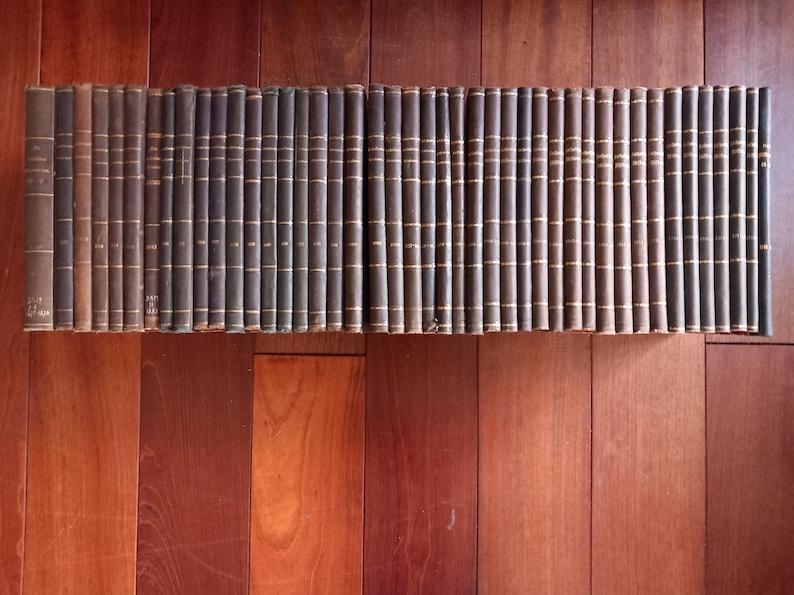 Uitgebreide omschrijving: | Halflinnen hardcover 1875-1920. In zeer goede conditie. 1879 ontbreekt. 44 Hardcovers. 1875 1876 in 1 uitgave. Naam oude eigenaar op schutblad en stempeltje in begin elk jaar. |