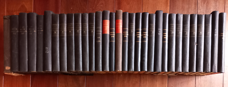 Uitgebreide omschrijving: | Halfleather hardcovers. 1874, 1876, 1881, 1882, 1892, 1895, 1897, 1899, 1900, 1901, 1903 up to 1924. 31 books + 1an extra 14 double issues.. Small stamps in beginning books. All in very good condition, except 1876 binding has come loose. 1899 has some paper missing from front cover. Few of the double issues have some signs of use or binding problems. |