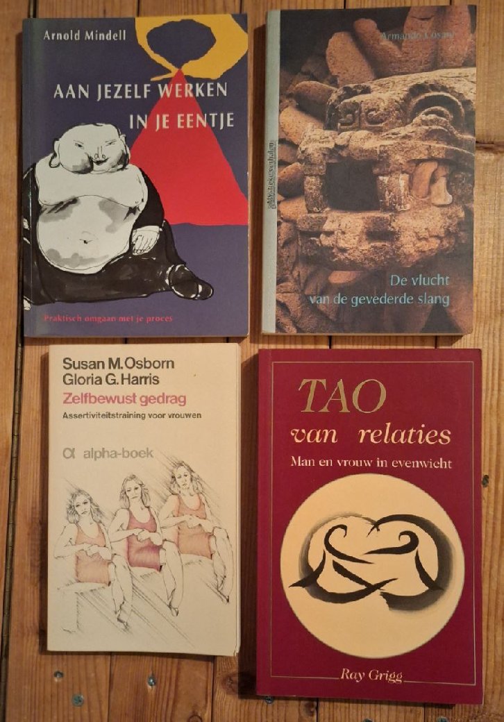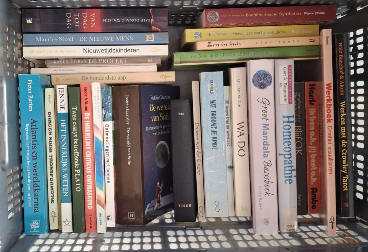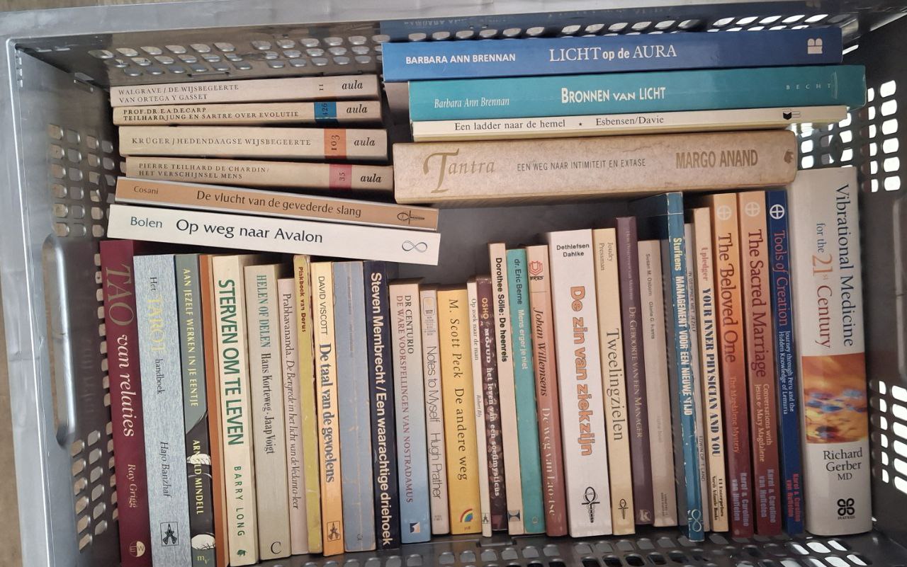 | Uitgebreide omschrijving: | Bewustwording, persoonlijke ontwikkeling, zaakboeken, spirituele romans, romans bekende schrijvers. Meest Nederlands, enkele spirituele boeken in het Engels. Foto's van rugzijde, enkele van voorkant. Sommige zijn nog vrijwel nieuw, anderen niet. |
