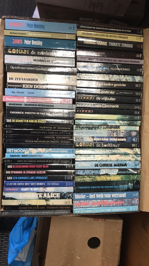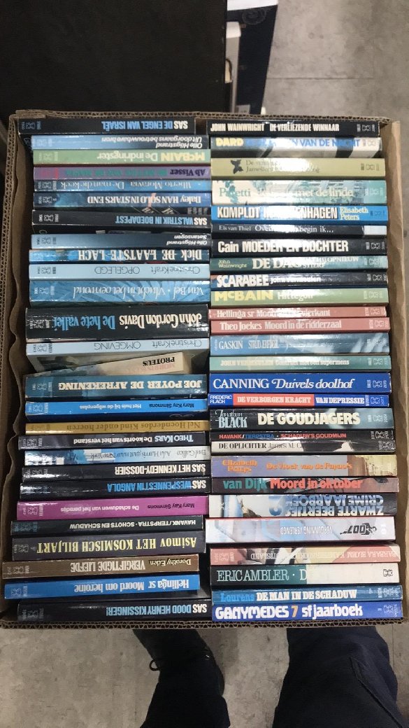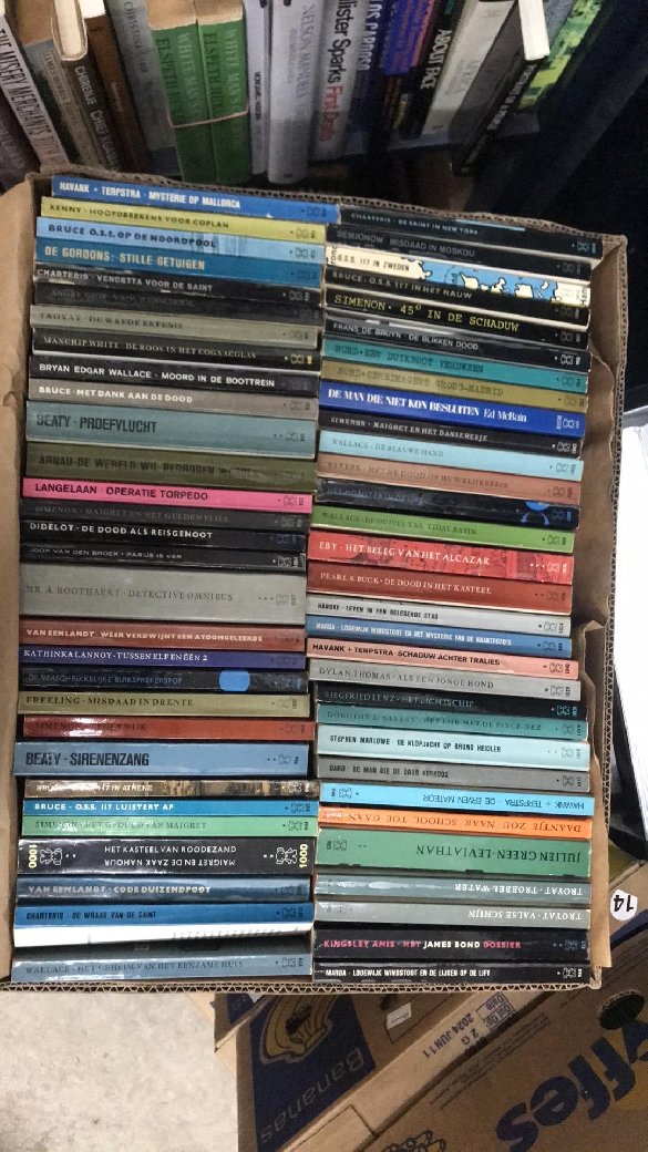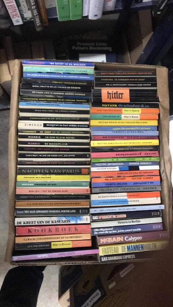| Uitgebreide omschrijving: | Ik heb een grote partij gekocht, waarvan ik alle witte boekjes heb genomen, want een klante van mij wilde 7 meter witte boekjes als versiering. Nu heb ik 17 bananendozen over, terwijl ik exclusief engelstalige boeken verkoop. Maak ik iemand blij met deze partij voor de symbolische prijs van 10 euro? Boeken zijn op te halen bij The Book Exchange, Amsterdam: Kloveniersburwal 58, 1012 CX. Snel reageren. Ik mik ze snel in de oude papier want ik heb de ruimte nodig. |