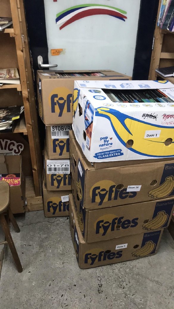| Korte omschrijving: | 17 bananendozen Witte Beertjes boeken |